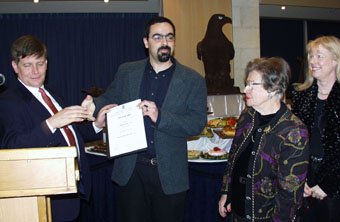 ד"ר אלון דומניס מעניק פרס ע"ש ד"ר אריה הלל ז"ל למיכאל רביבו.