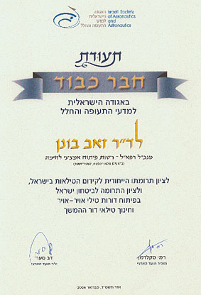 האגודה הישראלית למדעי התעופה והחלל בחרה בד"ר זאב בונן, מנכ"ל רפאל לשעבר, כחבר כבוד באגודה. חברות הכבוד הוענקה לו לציון תרומתו הייחודית לקידום הטילאות בישראל, ולציון התרומה לביטחון ישראל בפיתוח דורות של טילי אוויר-אוויר וחינוך מהנדסי הטילים של דור ההמשך.
