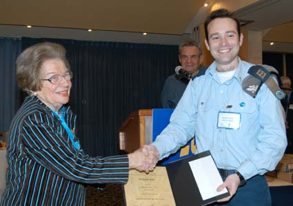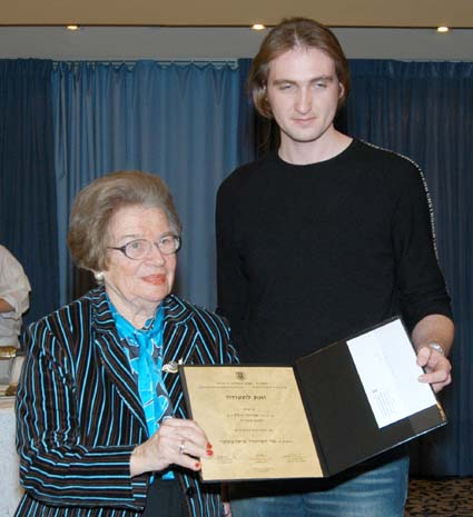 שולמית הלל מעניקה מלגה לסטודנט דימיטרי פיסרבסקי.
