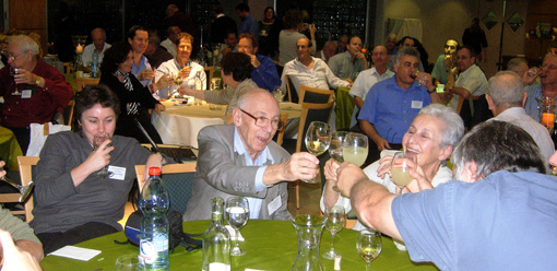 מצעד המברכים נמשך אל תוך הלילה בארוחת ערב חגיגית. ראשון עלה פרופ' דניאל ויס שסיפר איך בשני מקרים - בהפרש גדול של שנים - המלחמות קלקלו לו תוכניות לעשות עבודות מחקר משותפות עם פרופ' שנער על חוקי הנחיה וניווט אצל דגים, והוא הקדיש לערב הזה הרצאה מודגמת בשקופיות.