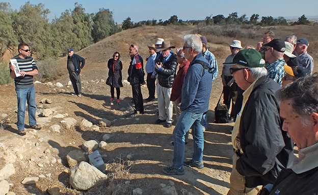 בן קשלס (משמאל) מסביר על ההתרחשויות ההיסטוריות בתל הרור