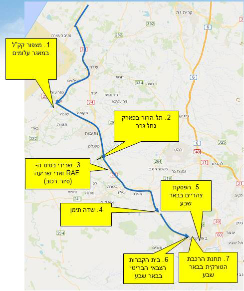 מפת הסיור לאורך קו הביצורים הטורקי בין עזה לבאר-שבע