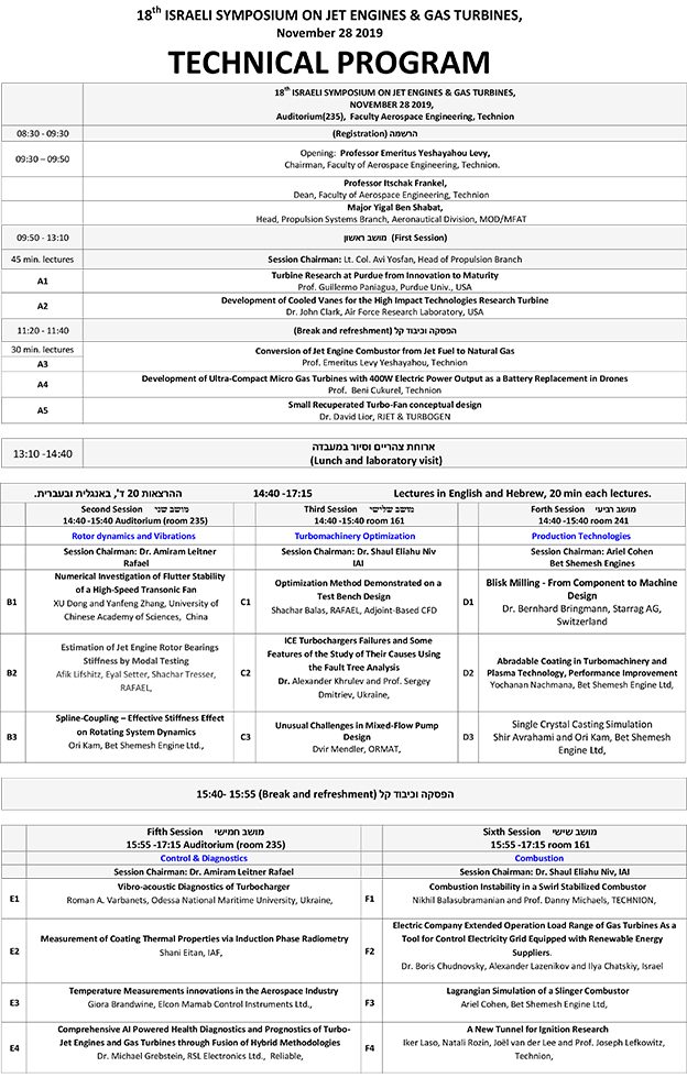 יום עיון במנועי סילון וטורבינות גז יום העיון הישראלי ה-18 במנועי סילון וטורבינות גז ייערך ביום חמישי, 28 בנובמבר 2019,