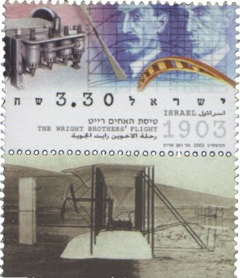 רייט. שלושת הבולים היפים, בערכים של 2.30 ש"ח, 3.30 ש"ח ו-5.90 ש"ח, עוצבו על-ידי אד ואן אויין. |