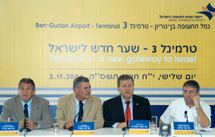 במסיבת העיתונאים לרגל פתיחת הטרמינל (מימין לשמאל): צבי שלום - יו"ר מועצת