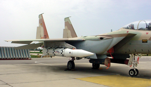 למעלה: בניסוי הטיסה הראשון. למטה: אנקור כחול תלוי על F-15I.