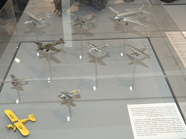 דגמים מוקטנים של מטוסים שהופעלו בארץ-ישראל בשנות ה-40', אותם בנה פרופ' נפתלי קדמון