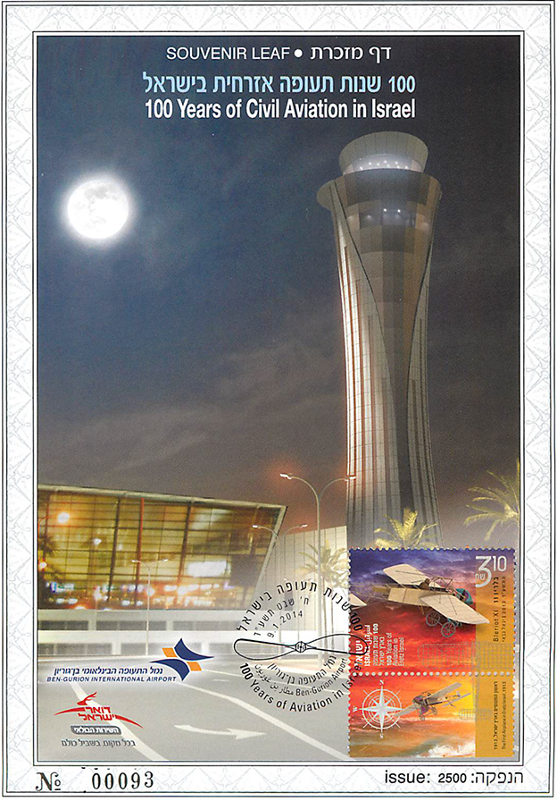 בטרמינל 3 בנמל התעופה בן-גוריון (נתב"ג), על הקיר המערבי בירידה לעבר מתחם חנויות הדיוטי-פרי לאחר ביקורת הגבולות, נפתחה ב-9 בינואר 2014 תערוכה לרגל מאה שנות תעופה אזרחית בישראל. בתערוכה 40 צילומים מאבני הדרך ומהמרחב העשיר של תולדות התעופה האזרחית בישראל.