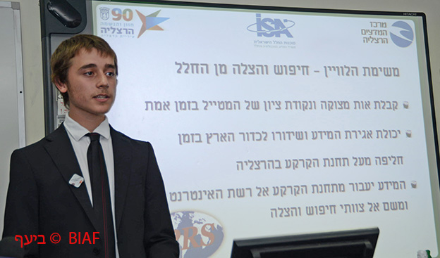התלמיד עידן פדידה, המשמש כסמנכ"ל הפרויקט, מתאר את משימות הלוויין.
