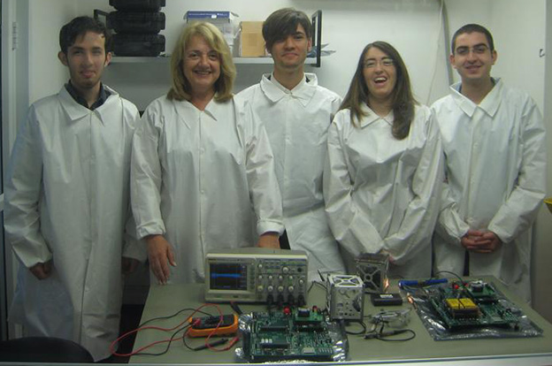 ד"ר אנה הלר (שנייה משמאל) וארבעת התלמידים שיצאו לאתר השיגור ברוסיה.